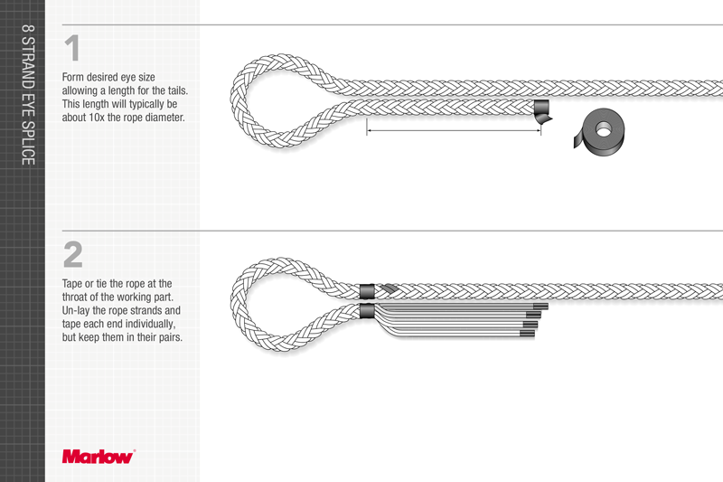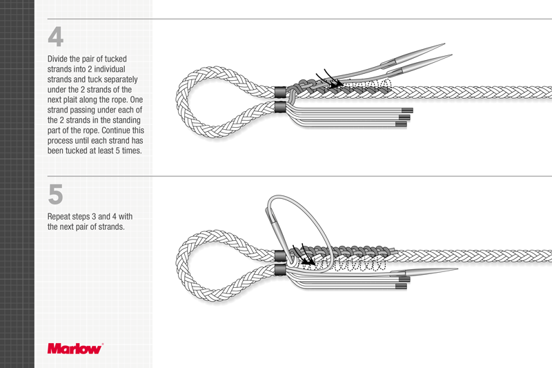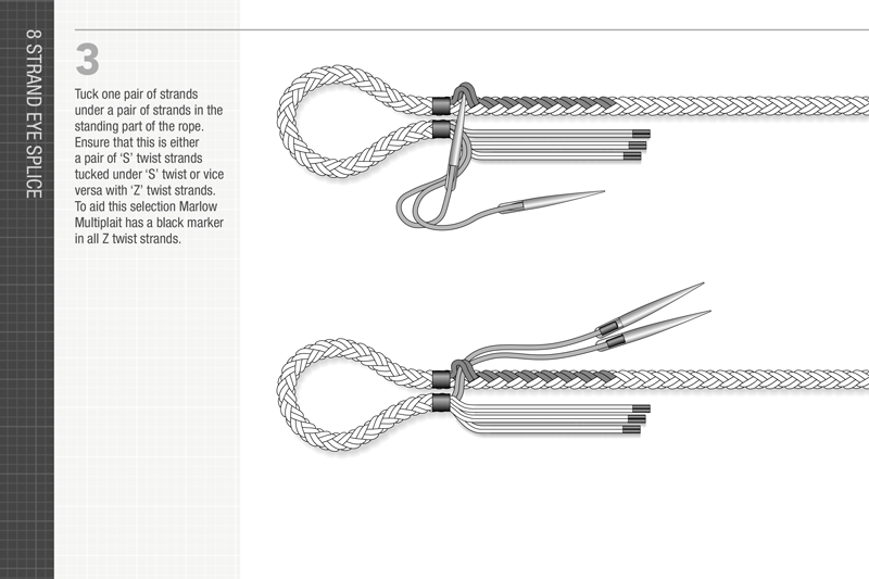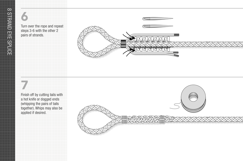 Marlow asked me to design and produce a visual guide illustrating splicing methods for several different types of rope. It a challenge to create the illustrations of these complex processes.