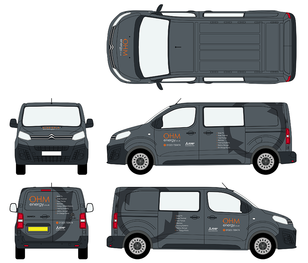Innovative heating and power installers OHM Energy have vans that are seen all over the south east of England. They feature this distinctive branding.
